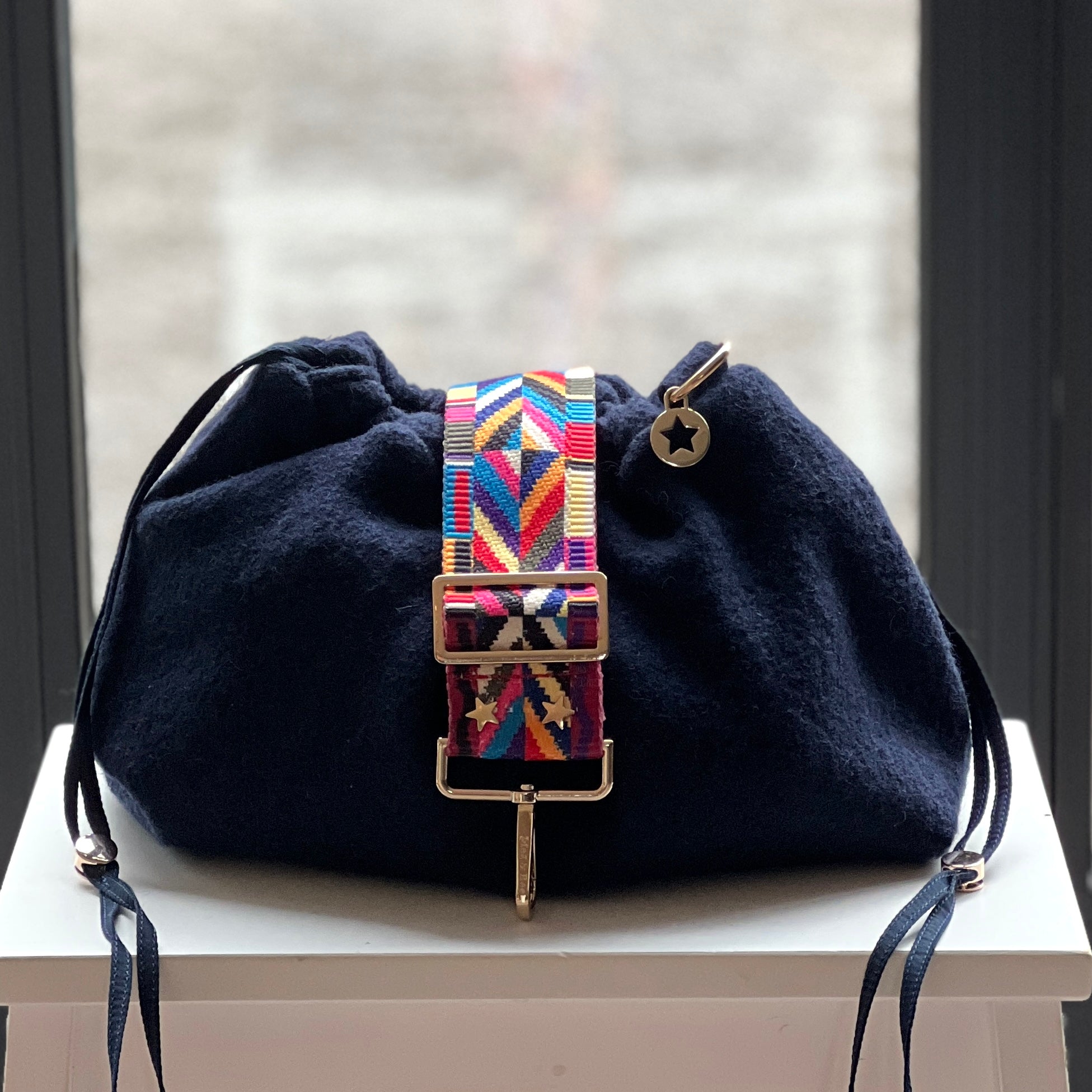 Handmade for Meg & Bee in London. Each Bubble Bag comes with its own removable strap as shown in first image. Gold star disc attached, the sign of a Meg & Bee bag.
