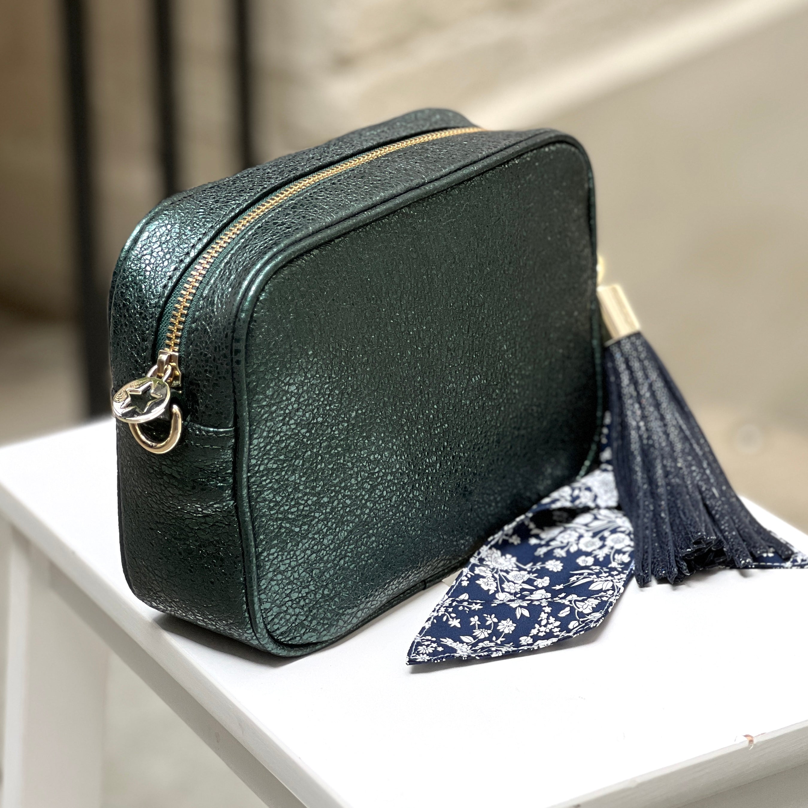 Think 'Racing Green' in a metallic textured sparkly leather.