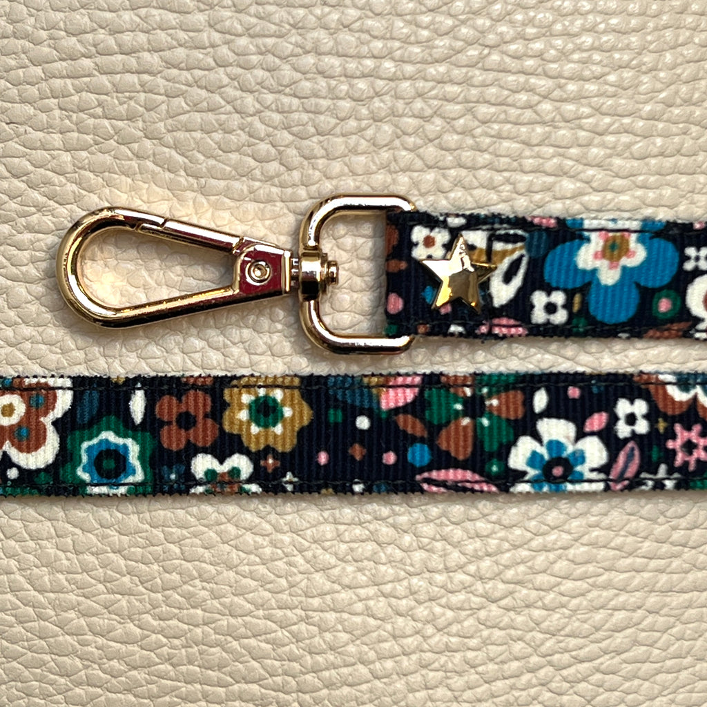 Hardware: Gold 'D' rings with a Meg & Bee star disc charm.