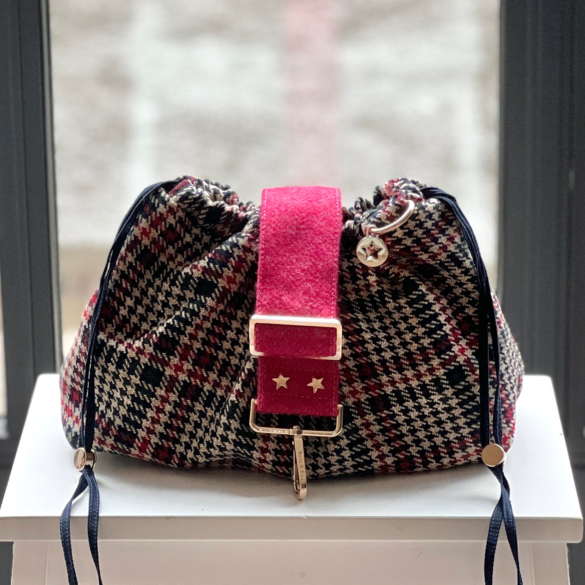 Handmade for Meg & Bee in London. Each Bubble Bag comes with its own removable strap as shown in first image. Gold star disc attached, the sign of a Meg & Bee bag.