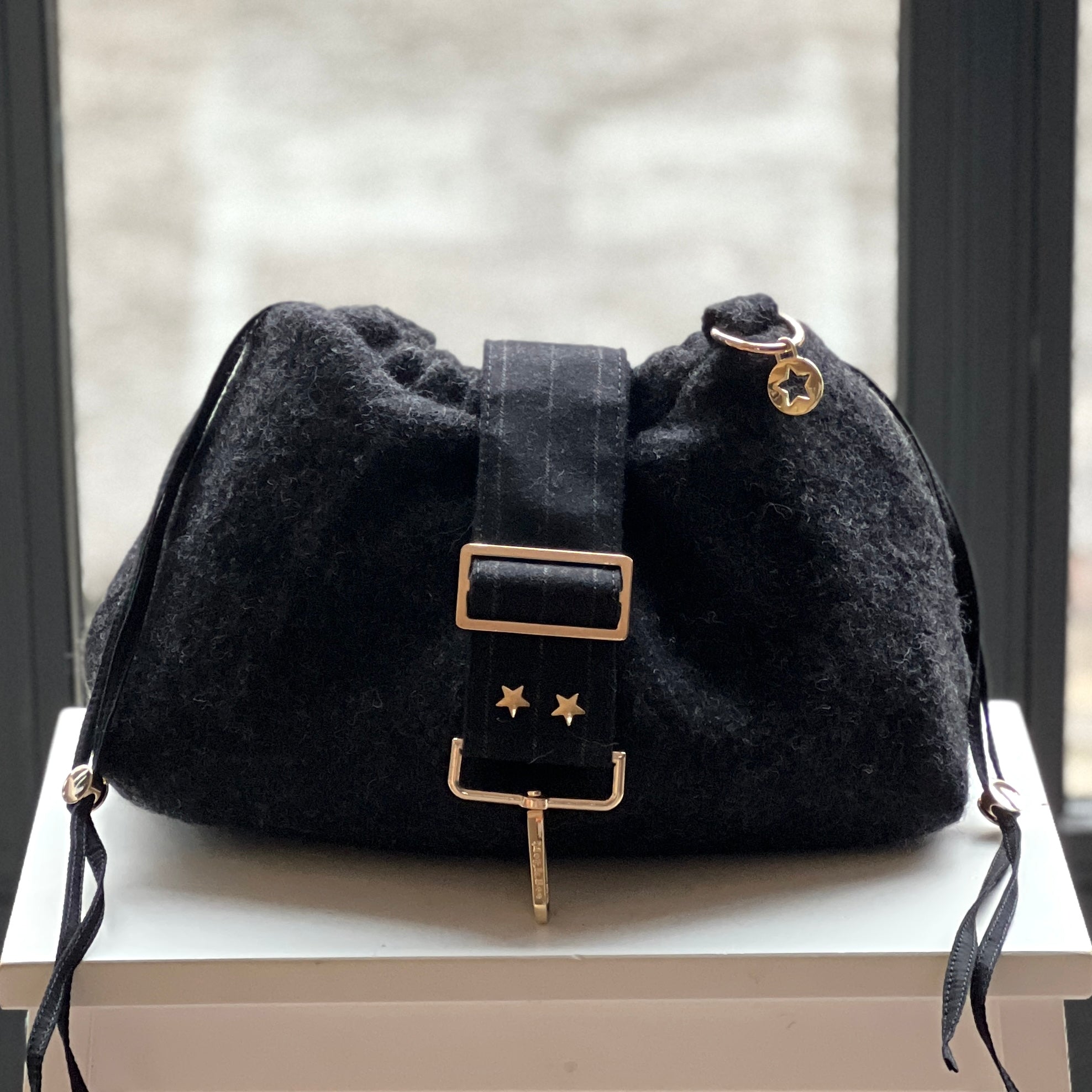 Handmade for Meg & Bee in London. Each Bubble Bag comes with its own removable strap as shown in first image. Gold star disc attached, the sign of a Meg & Bee bag.