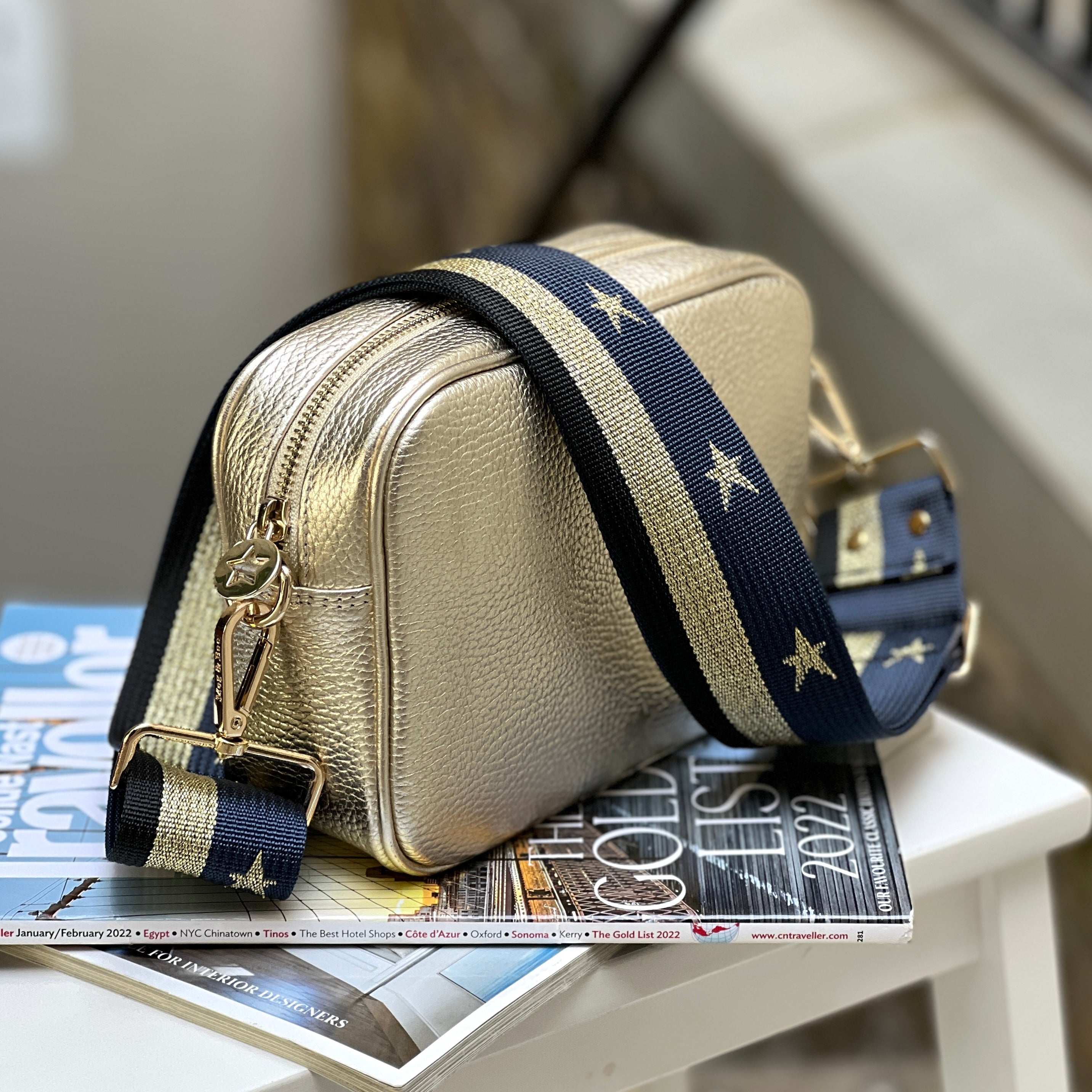 INCLUDED IN THIS COMBOGold Classic Bag, Navy Gold Circus Strap