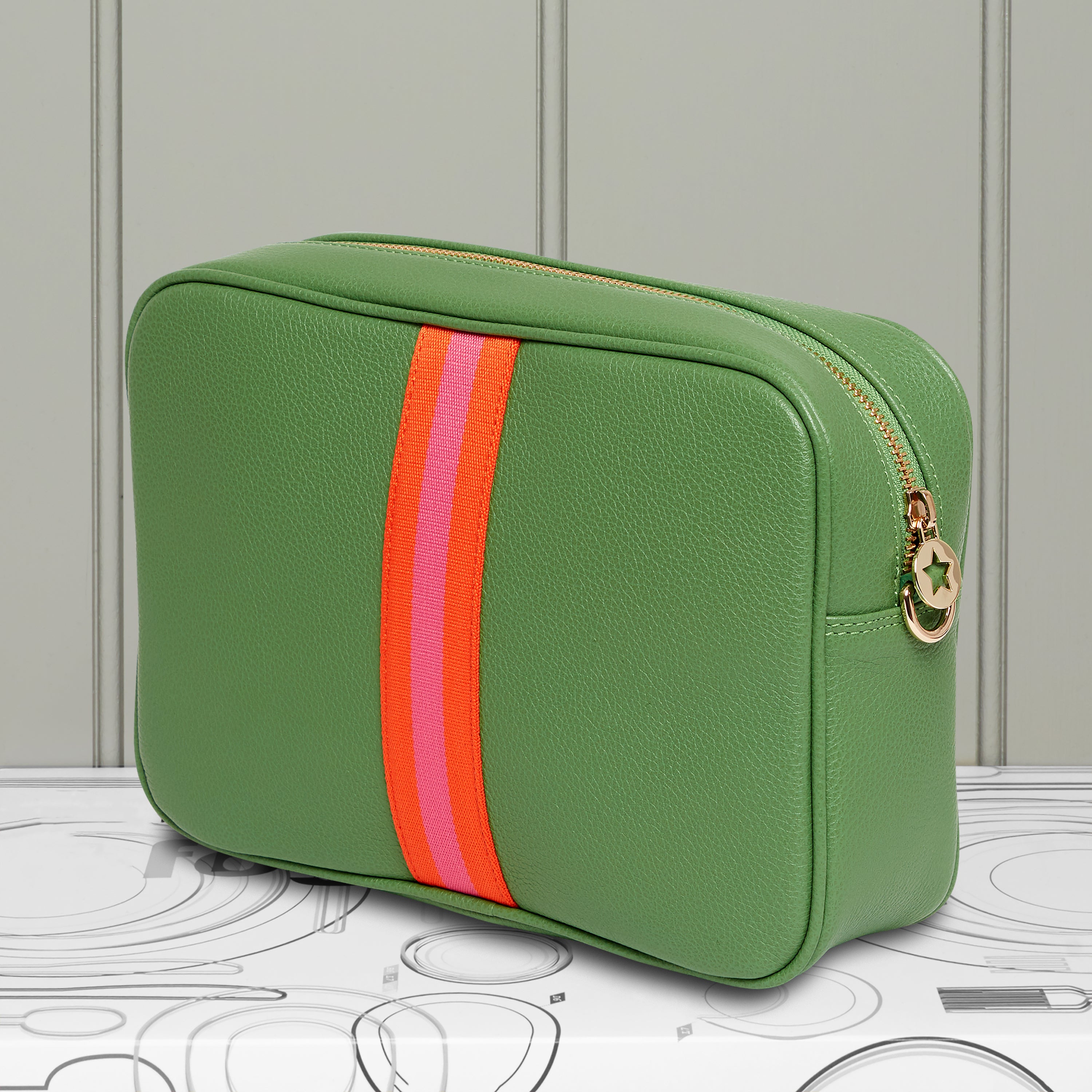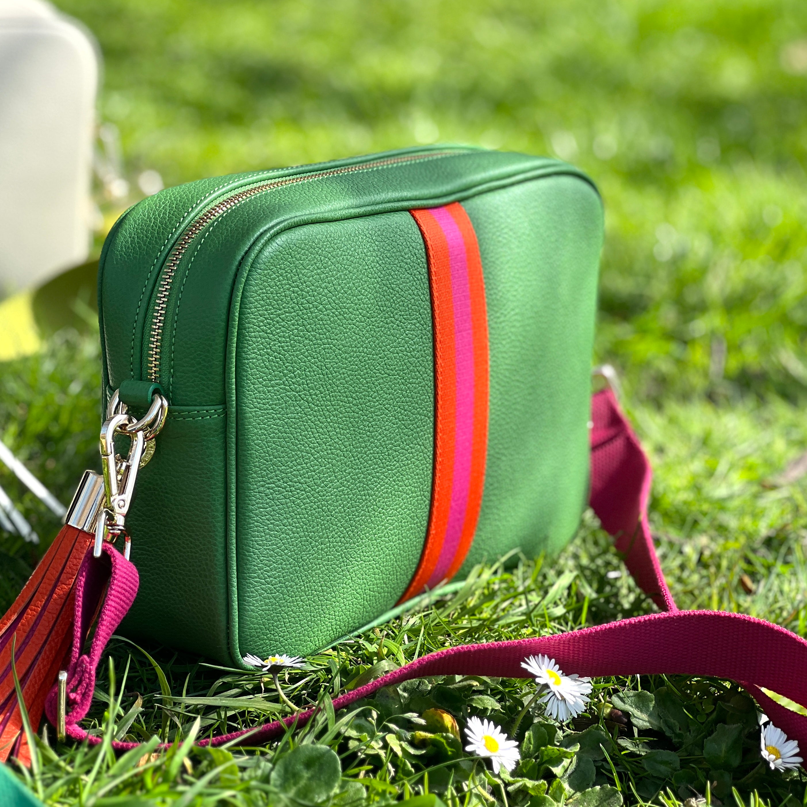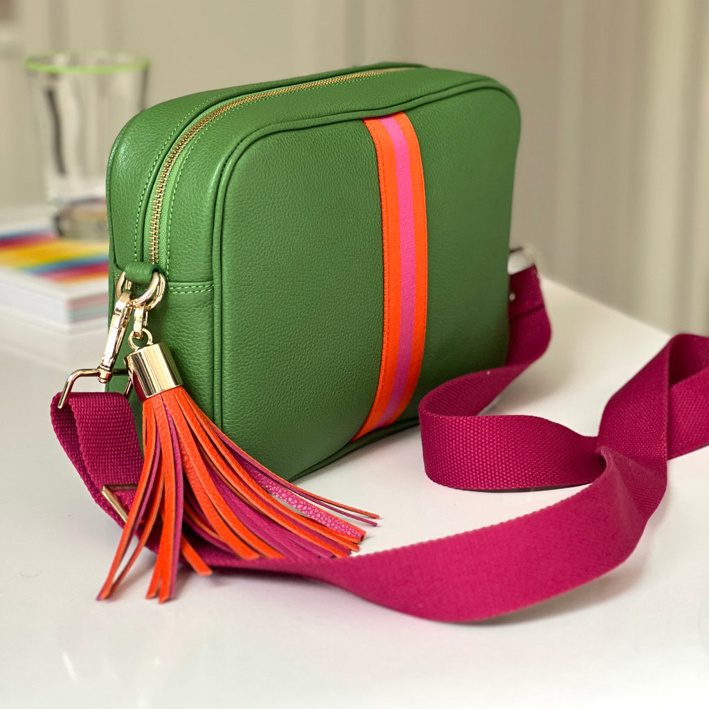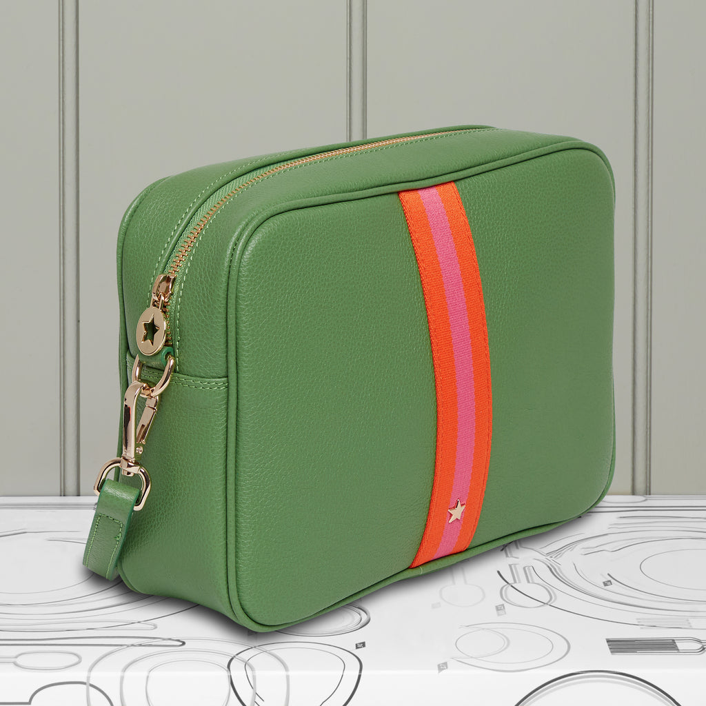 Cactus Green Leather with Exeter webbing stripe on both sides.