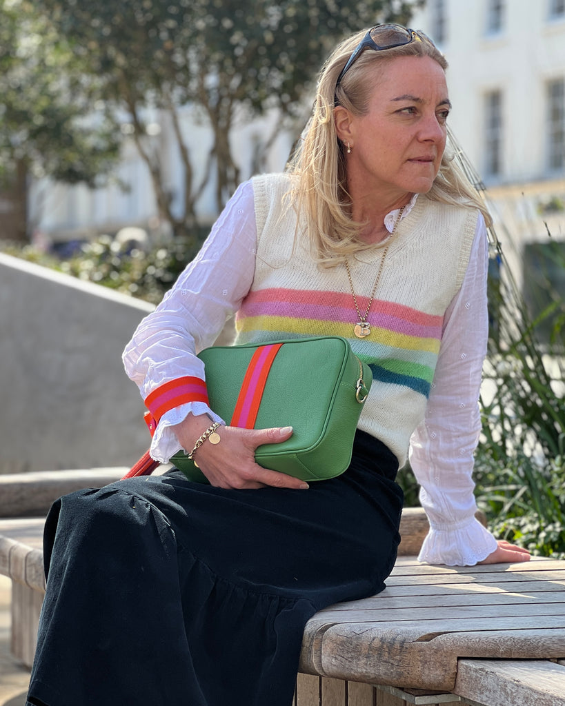 Designed in London by us and hand-crafted in our small workshop in Spain. Each Major Bag (our largest size crossbody bag) comes with its own removable and adjustable matching leather strap. Two internal pockets. Other components can be bought separately; make it your own by choosing a combination of interchangeable straps, tassels, badges and charms.
