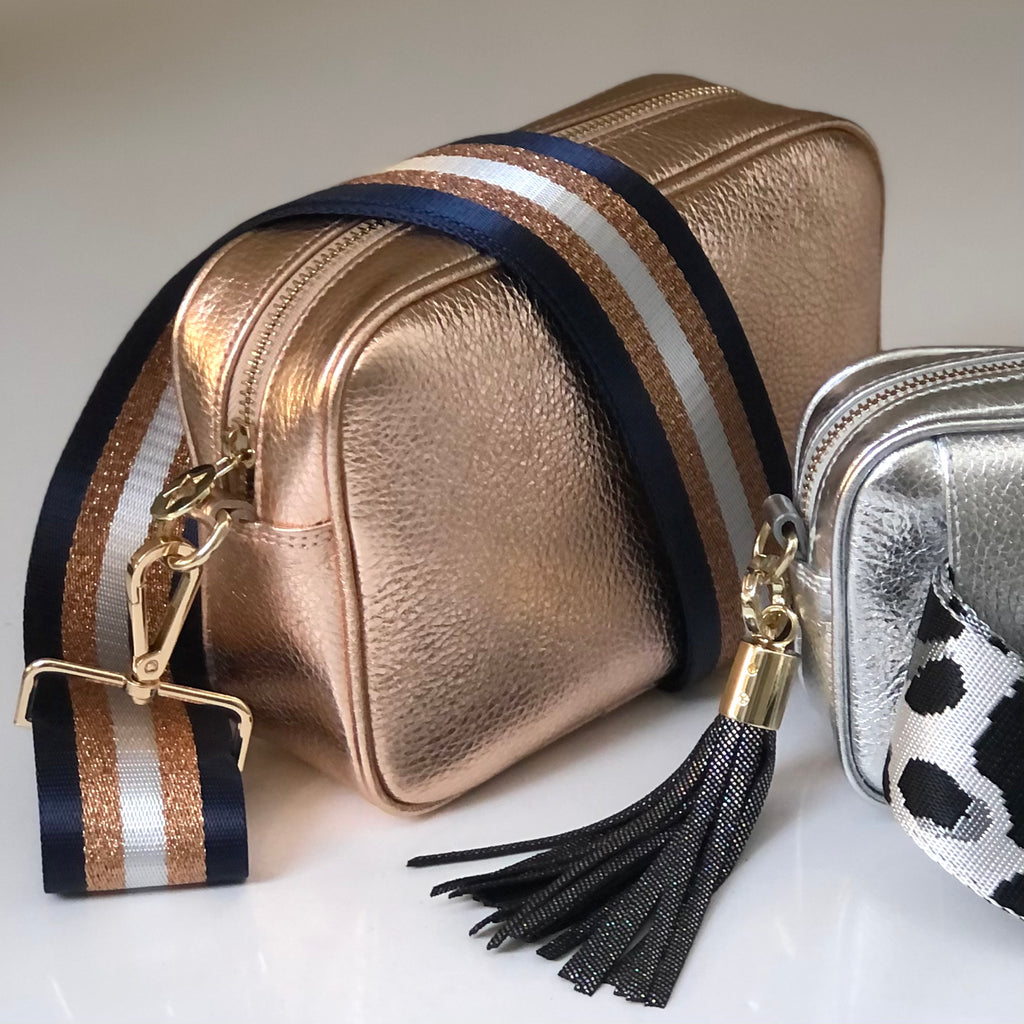 Designed in London by us and hand-crafted in our small workshop in Spain. Each Classic crossbody camera bag comes with its own removable and adjustable matching leather strap. Single internal pocket. Other components can be bought separately; make it your own by choosing a combination of interchangeable straps, tassels, badges and charms.