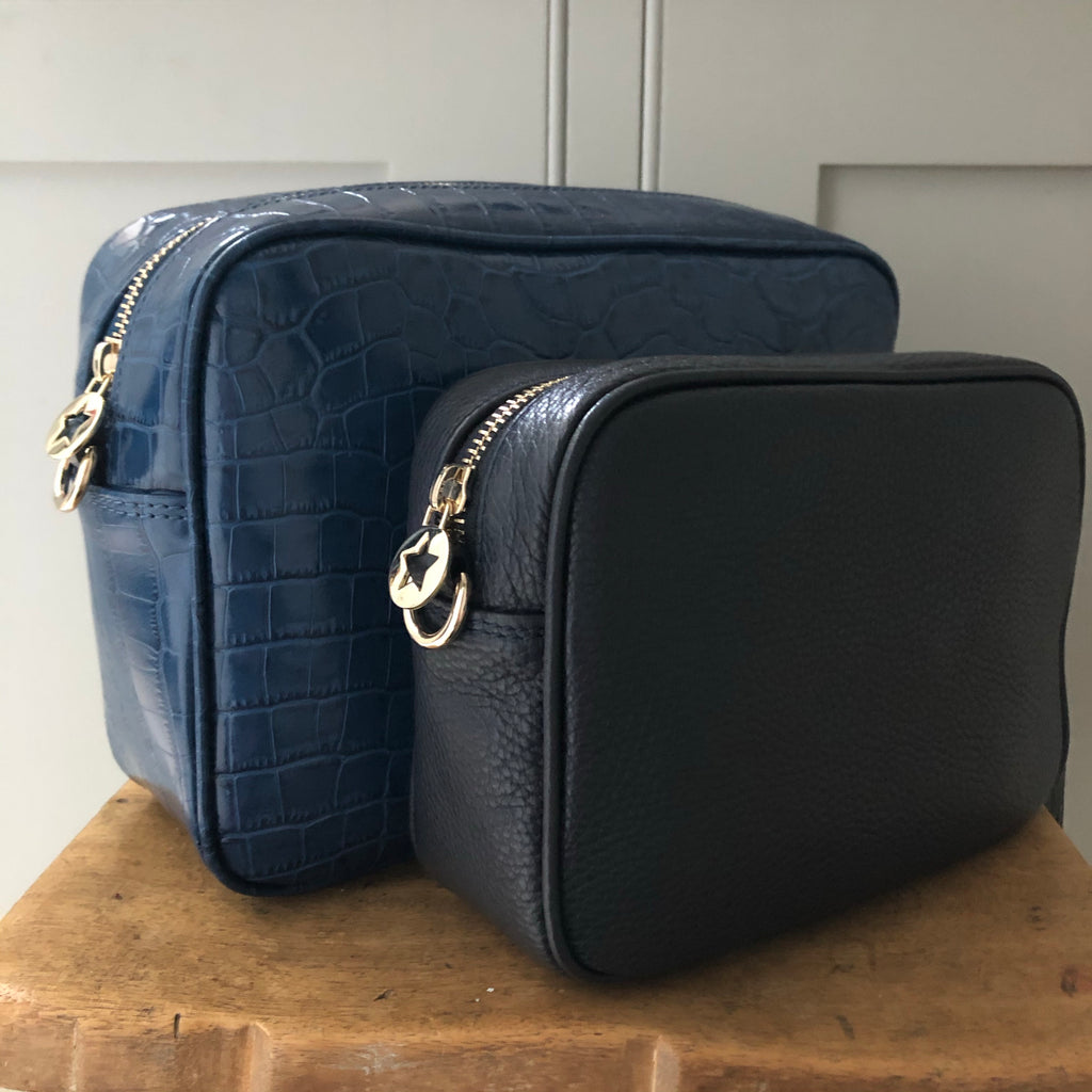 COLOUR DENIM BLUE CROC PRINT LEATHER