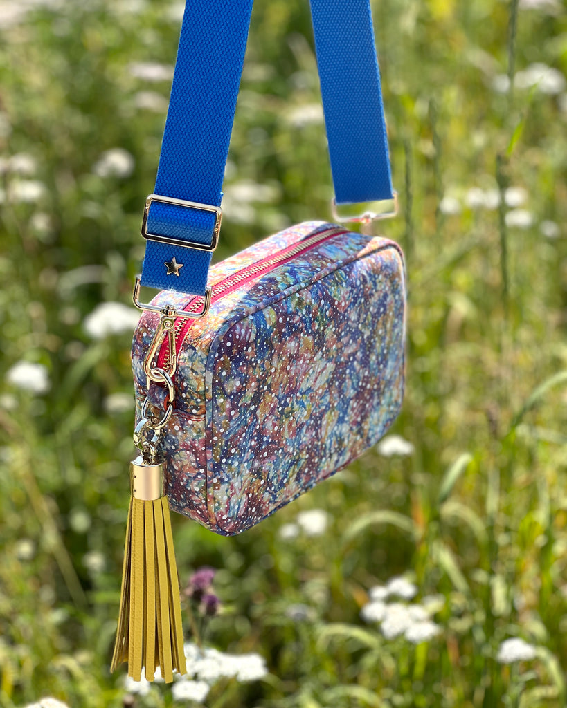 Designed in London by us and hand-crafted in our small workshop in Spain. Each bag comes with its own removable and adjustable matching slim leather strap. Single internal pocket. Other components can be bought separately; make it your own by choosing a combination of straps, tassels, badges and charms.