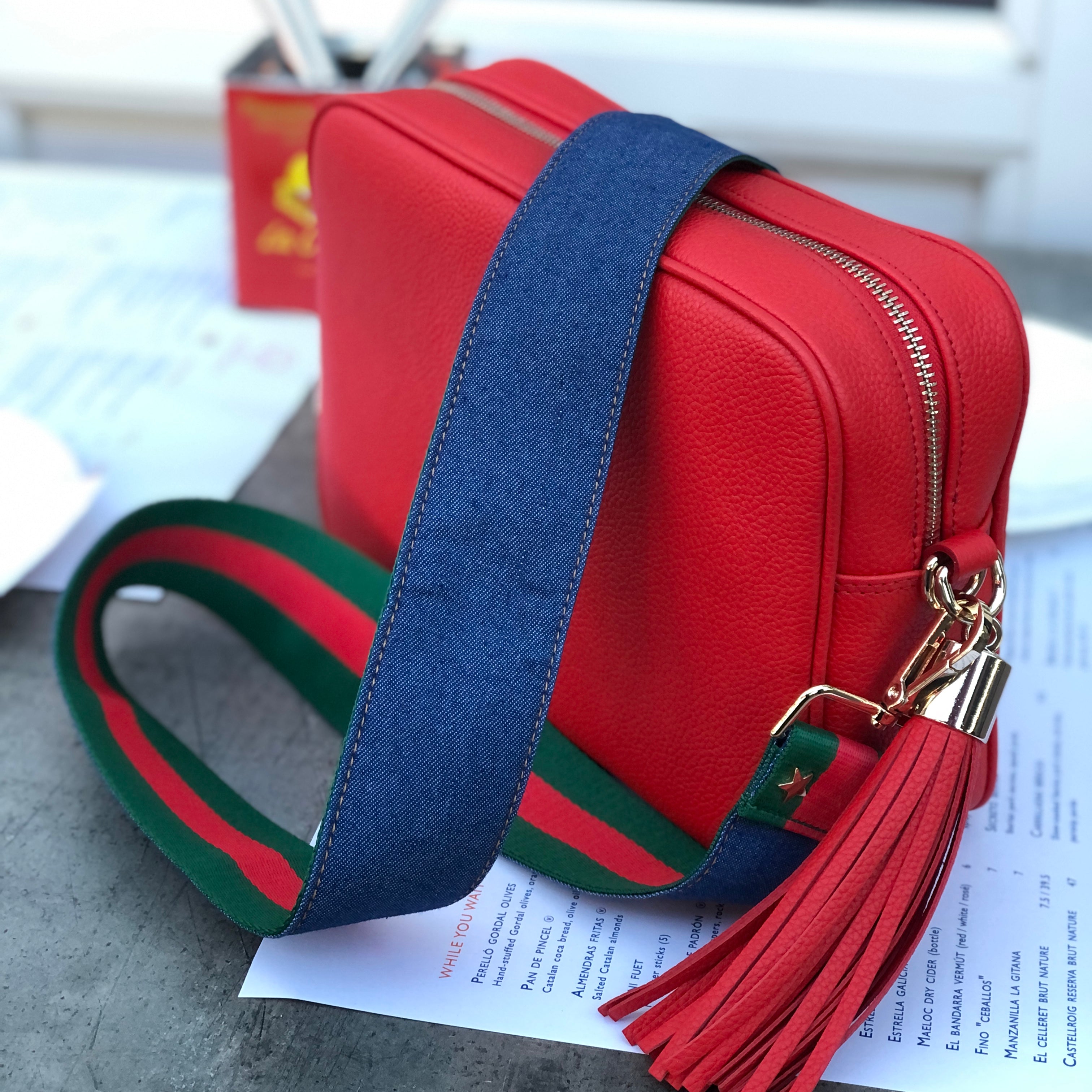 Designed in London by us and hand-crafted in our small workshop in Spain. Each Major Bag (our largest size crossbody bag) comes with its own removable and adjustable matching leather strap. Two internal pockets. Other components can be bought separately; make it your own by choosing a combination of interchangeable straps, tassels, badges and charms.