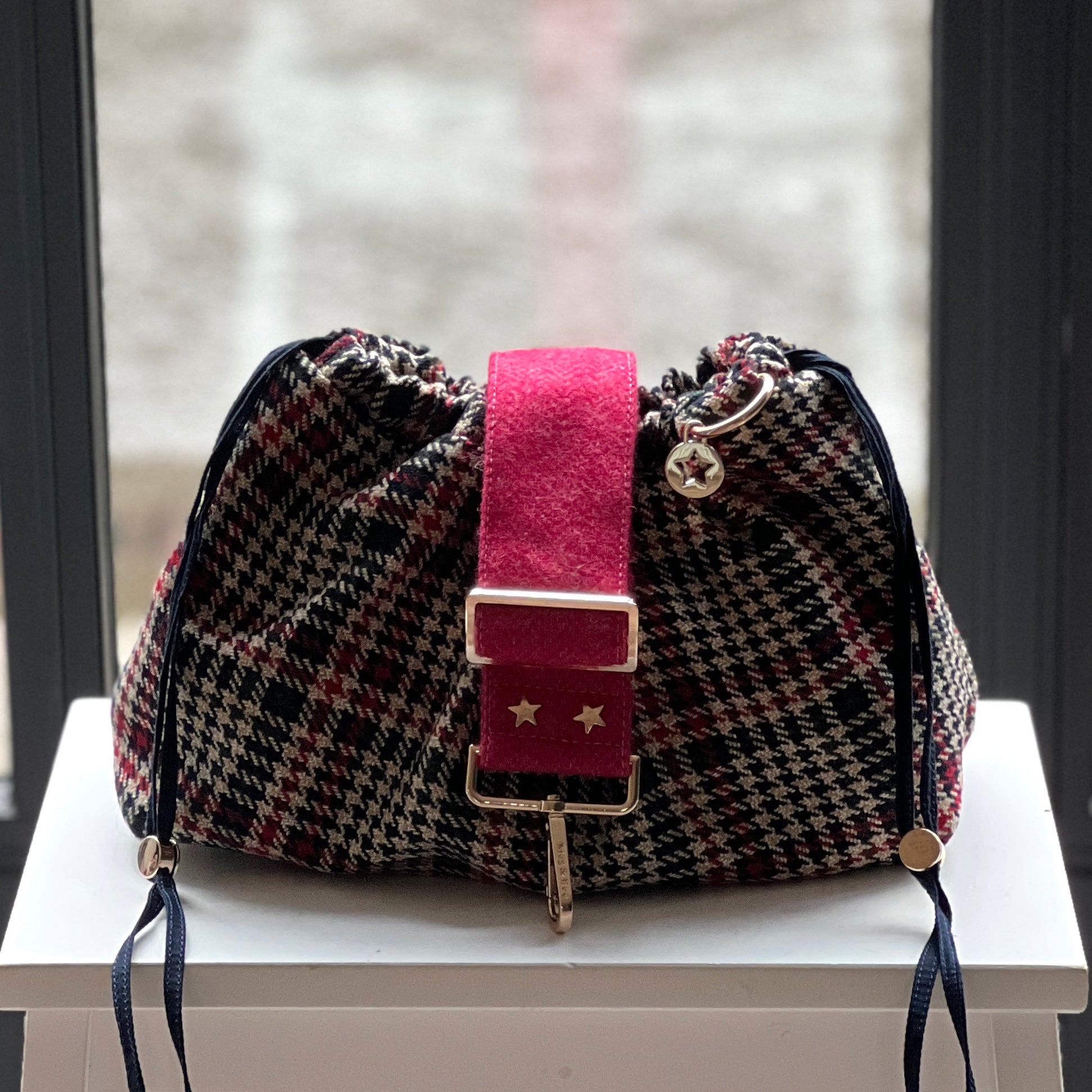 Hardware: Gold 'D' rings with a Meg & Bee star disc charm.
