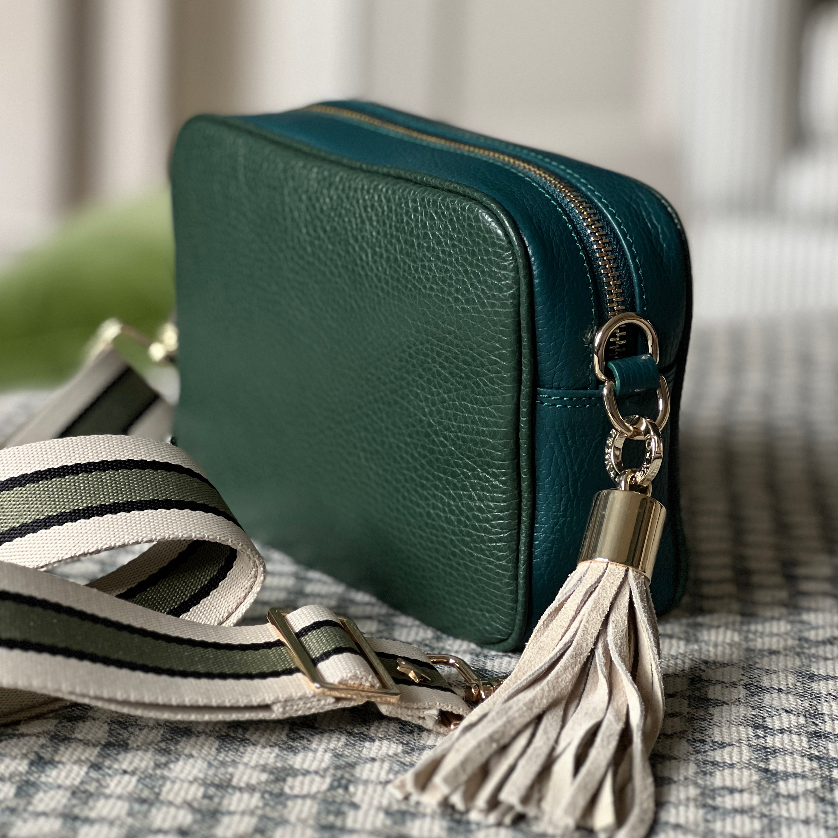 Designed in London by us and hand-crafted in our small workshop in Spain. Each Classic crossbody camera bag comes with its own removable and adjustable matching leather strap. Single internal pocket. Other components can be bought separately; make it your own by choosing a combination of interchangeable straps, tassels, badges and charms.